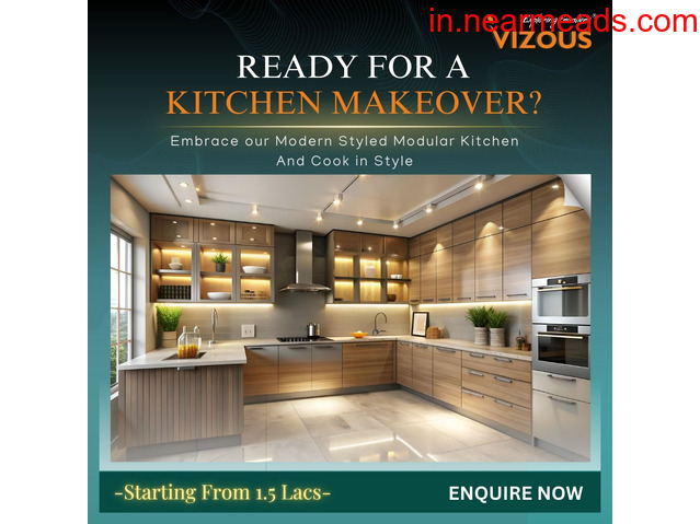 Upgrade your kitchen with a modern, functional, and stylish modular design from Vizous Interio.
